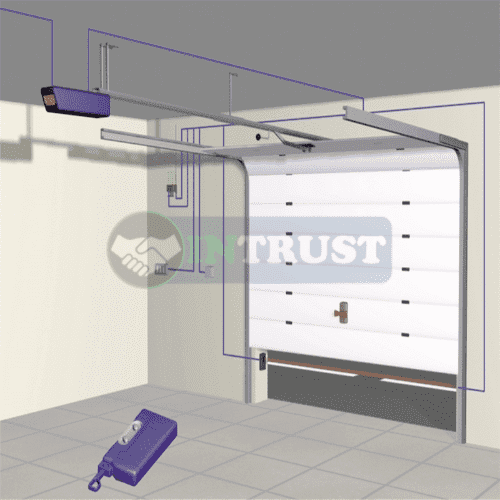 - A safety anti-collision device can be set at the bottom of the door (optional).When closing the door, it stops quickly to ensure the safety and exit of people and things if it approaches an obstacle, and the remote control and light control are optional. The door can be installed indoors or outdoors.